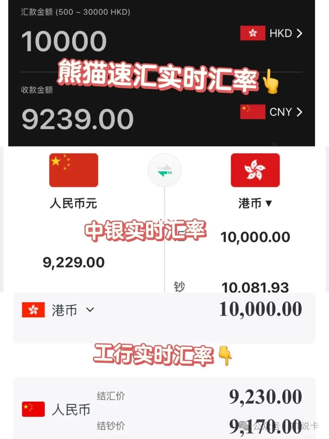 相较于常规的银行汇款,熊猫速汇的汇率更好,以港币汇款为例,对比了同一时间的中行汇率和工行汇率,可以看出熊猫速汇的汇率是三者里最好的。