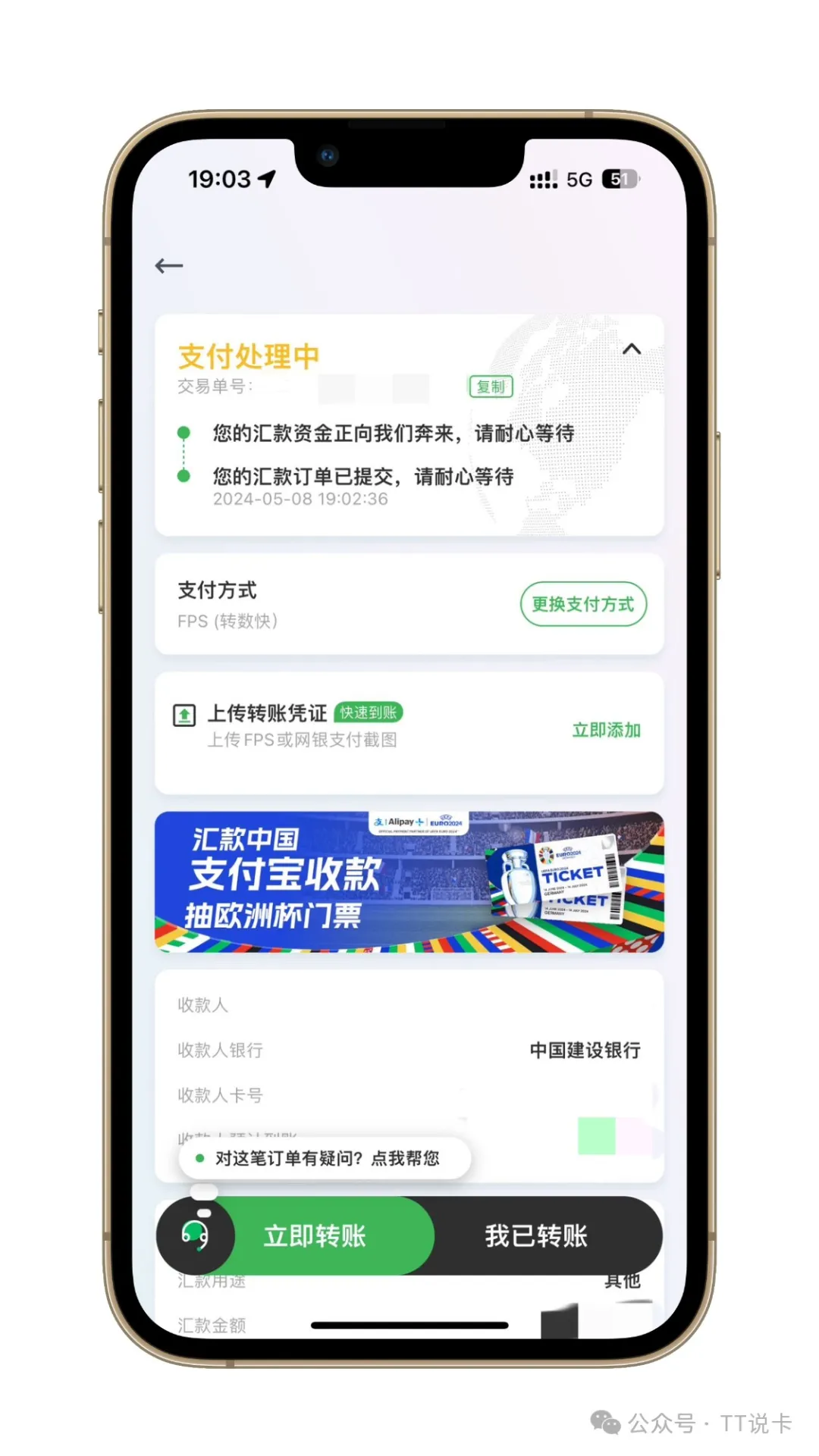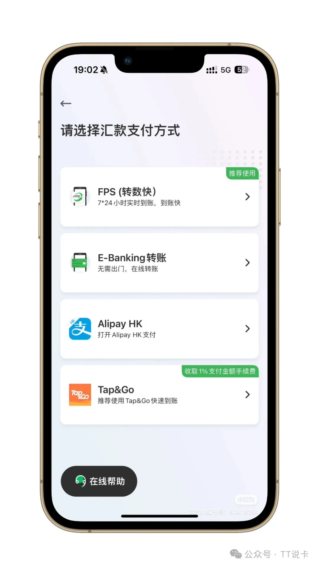 选择汇款支付方式进行支付,支持FPS转速快、E-Banking、Alipay HK、Tap&Go进行支付。